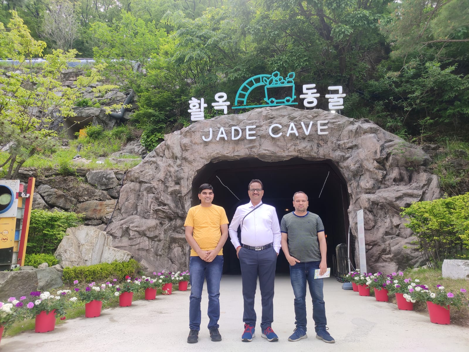 दुपारी आमचा दुसरा विद्यार्थी निनाद आमच्यात सामील झाला. तो आम्हाला चुंगजू येथील ह्वालोक गुहा बघायला घेऊन गेला. एकेकाळी डोलोस्टोनची समृद्ध खाण असलेले, ह्वालोक जेड केव्ह आता एक दोलायमान थीम पार्क झाले आहे. चुंगजू तलावाच्या किनाऱ्यावर असलेली ही गुहा १९०० मध्ये सापडली होती. इथे १९ व्या शतकात खणलेल्या खनिजांची वाहतूक करण्यासाठी वापरलेली महाकाय इंजिने बघायला मिळतात. या गुहेत स्वच्छ पाण्याच्या सरोवरात पारदर्शक कयाक मधून बोटिंग करण्याची मजा काही औरच असते. कायक च्या खालून जात असलेल्या माशांचे निरीक्षण करता येते. गुहेचे तापमान १० डिग्री सेल्सिअस दरम्यान असल्याने खूप थंडी वाजते. गुहेत वाइन आणि व्हिनेगर मोठ्या बॅरलमध्ये आंबवले जातात.